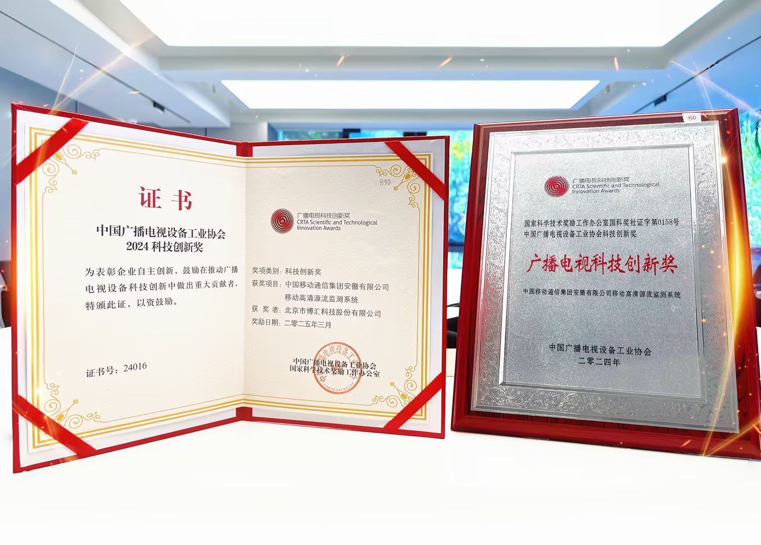 經(jīng)國家科學(xué)技術(shù)獎(jiǎng)勵(lì)工作辦公室批準(zhǔn)設(shè)立,由中國廣播電視設(shè)備工業(yè)協(xié)會承辦的2024科技創(chuàng)新獎(jiǎng)(國科獎(jiǎng)社證字第0158號)重磅揭曉,博匯科技為中國移動(dòng)通信集團(tuán)安徽有限公司定制開發(fā)的移動(dòng)高清源流監(jiān)測系統(tǒng)項(xiàng)目榮膺「廣播電視科技創(chuàng)新獎(jiǎng)」。