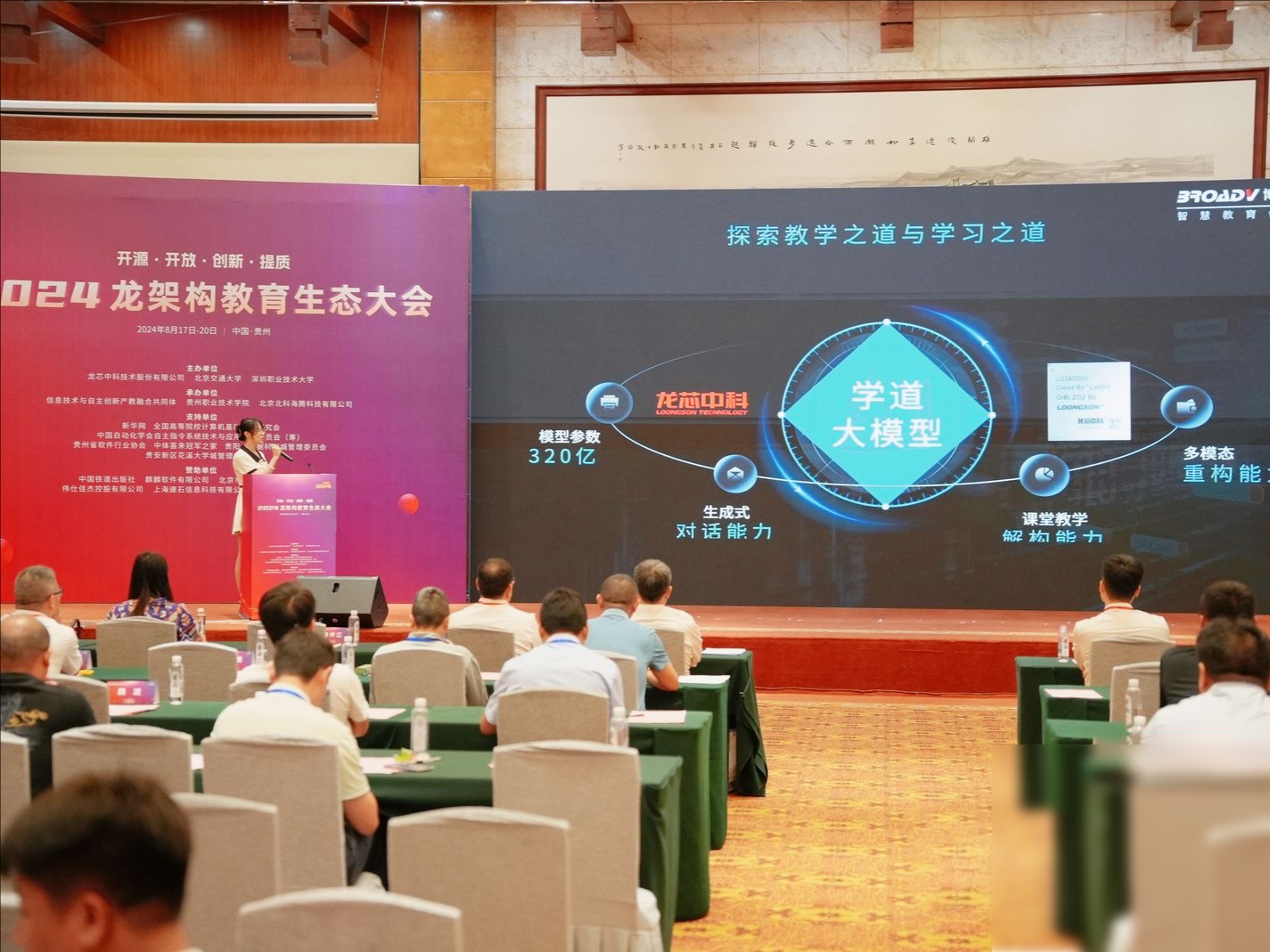 8月17日-20日,2024龍架構教育生態大會”在貴陽成功舉辦,博匯科技作為特邀企業,攜自主研發的博匯“學道”大模型系列產品精彩亮相并發表主題演講,為來自全國百余所本科、職教院校的專家和一線老師呈現了AI+教育的全新科技體驗。